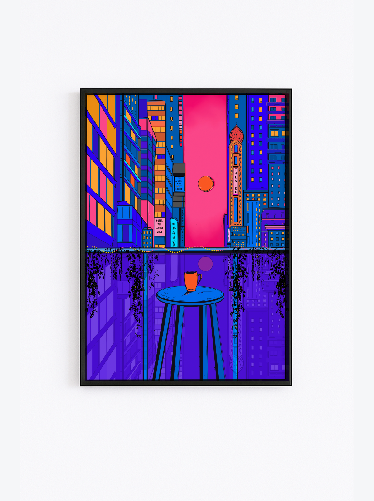 Boire plus de café – Impression artistique sur le balcon de la ville nocturne queer